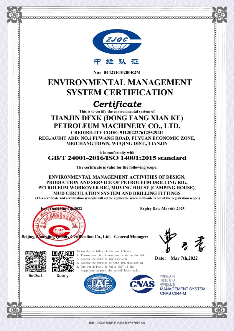 環(huán)境管理體系認證證書英文